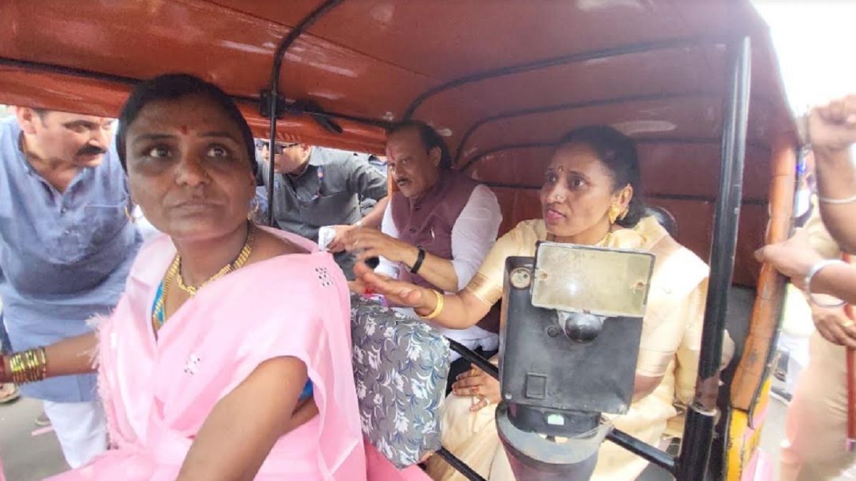अजित पवारांनी महिला चालवित असलेल्या रिक्षाने केला प्रवास