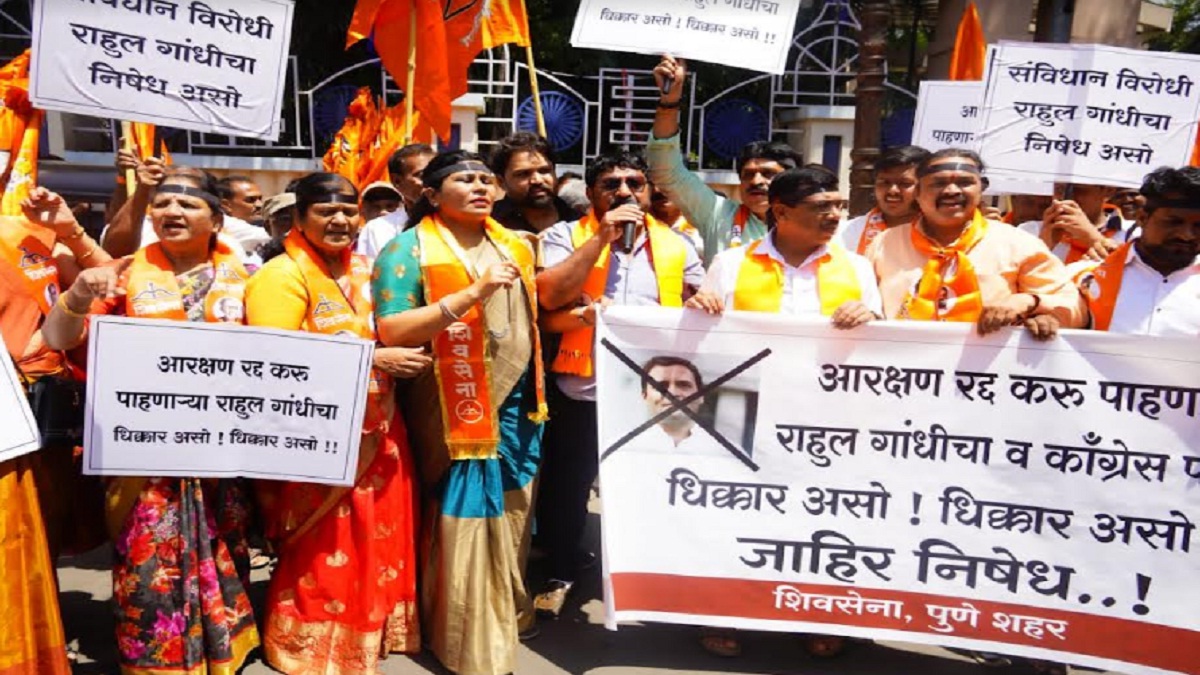 शिवसेना शहर भानगिरे पुढे म्हणाले की राहुल गांधी यांनी वेळोवेळी संविधान विरोधी विधाने केली असून, लोकसभा प्रचारादरम्यान माध्यमांमध्ये त्यांनी उघडपणे पत्रकार परिषदेत या पत्रकार परीषदेत किती वार्ताहर मागास प्रवर्गातील आहेत?किती छायाचित्रकार मागास प्रवर्गातील आहेत असे प्रश्न विचारून आपण संविधान विरोधी आहोत हे दाखवून दिले आहे. विरोधी पक्षनेता हे अत्यंत जवाबदारीचे काम आहे, वेळोवेळी राहुल गांधी यांनी विनाकारण सामाजिक सलोखा बिघडेल असे विधान केले आहे. पुणे शहर शिवसेना राहुल गांधी यांच्या या आरक्षण विरोधी वक्तव्याचा जाहीर निषेध करीत असून राहुल गांधी यांनी जर माफी मागितली नाही तर अत्यंत उग्र स्वरूपाचे आंदोलन करण्यात येईल असेही शिवसेना शहर प्रमुख प्रमोद भानगिरे यांनी सांगितले.