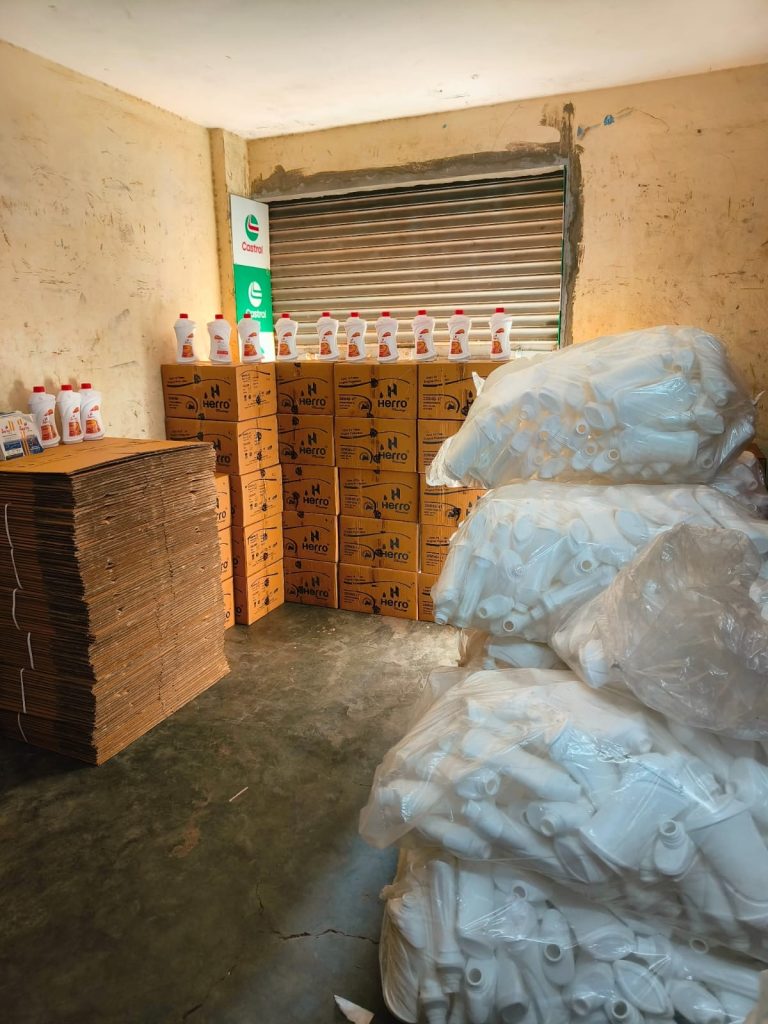 आरोपीत इसमाकडे अधीक तपास करता त्याने सदरचा माल वाघोली येथुन विकत घेतल्याचे सांगीतल्याने वाघोली पुणे येथील एस.एफ. इंडस्ट्रीयल कारपोरेशन फर्म, वर छापा कारवाई करुन इसम नामे जावेद शेरजमा खान रा. रुम नं.१४, टिंगरेनगर, पुणे यास ताब्यात घेवुन त्याचेकडून एकुण २,०१२५५/- रुपये किमतीचा HERO कंपणीच्या इंजीन ऑईलच्या बॉटलीवरील मिळता जुळता (H Herro 4T Oil) असा लोगो व वर्ड मार्क कॉपीराईट करुन वापरुन तयार केलेले बनावट इंजीन ऑईल च्या ९०० मिलीच्या एकुण ४७२ बॉटल, ५६० बनावट लोगो, १,२७५ खाली बॉटल व १०० बॉटल पॅक करण्याचे रिकामे बॉक्स असा एकुण २,०१,२५५/- किंमतीचा मुद्देमाल जप्त करण्यात आला आहे. सदर कारवाईत एकुण ३,११,४१५/- रुपये किमतीचा माल जप्त करण्यात आला आहे.