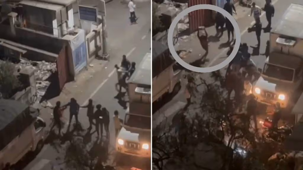 एक जण दुसऱ्याच्या अंगावर धावून जात कानशिलात लागवल्याचे व्हिडिओमध्ये स्पष्ट दिसत आहे. त्यानंतर त्या तरुणाला इतरांनी मारहाण केली. दोन्ही गटात तुफान हाणामारी झाली. एकाने भला मोठा सिमेंटचा गट्टू उचलून एकाच्या पाठीत घातला. तर दुसऱ्याला मारहाण करण्याचा प्रयत्न केला. हा व्हिडीओ सजग नागरिकाने आपल्या मोबाईलमध्ये कैद केला आहे.