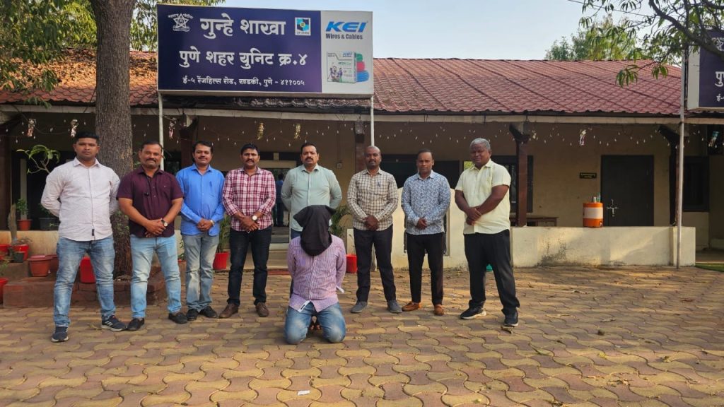 आज रोजी मा. वरिष्ठांच्या आदेशाने युनिट-४ चे पथक, येरवडा पोलीस ठाण्याच्या हद्दीमध्ये गुन्हे प्रतिबंधक पेट्रोलिंग करीत असताना पोलीस अंमलदार नागेशसिंग कुंवर, देविदास वांढरे यांना गोपनीय बातमी मिळाली की, आरोपी नामे आदेश उर्फ गणेश रवींद्र जगताप हा चिमा घाट उद्यान येरवडा पुणे येथे येणार आहे.’ अशी खात्रीशीर बातमी मिळाल्याने युनिट-४ चे पथकाने सदर ठिकाणी जाऊन त्यास ताब्यात घेऊन , त्याचे नाव पत्ता विचारला असता, त्याने आपले नाव आदेश उर्फ गणेश रवींद्र जगताप रा. सर्वे नंबर २ शेलार चाळ येरवडा पुणे असे सांगितले. त्याचे बाबत येरवडा पोलीस स्टेशनकडून माहिती घेतली असता, त्याचे विरुद्ध येरवडा पोलीस स्टेशन गु.र.नंबर१८३/२०२५भा.न्या. सं.कलम.११८(२),११८(१), ११५(२)३५१(३),३(५) आर्म ॲक्ट ४(२५) म. पो. का. कलम ३७ (१) (ब) सह १३५ क्रि. लॉ ३ व ७ महाराष्ट्र संघटित गुन्हेगारी नियंत्रण कायदा १९९९ चे कलम ३(१)(ii),३(२),३(४) अन्वये गुन्हा दाखल आहे. त्यास पुढील कारवाई करिता वैद्यकीय तपासणी करून येरवडा पोलीस ठाण्याचे ताब्यात देण्यात आले आहे.