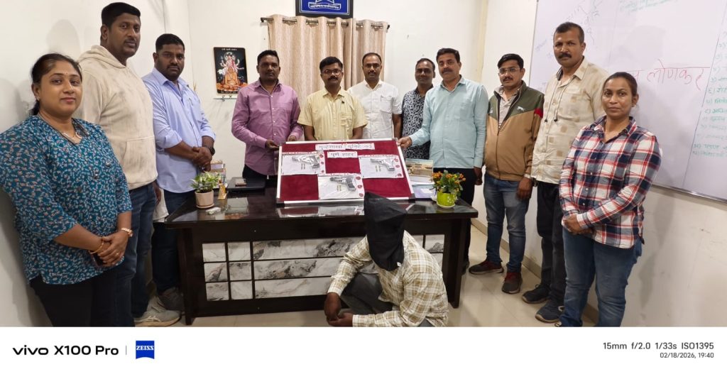 दिनांक १८/०२/२०२६ रोजी गुन्हे शाखा, युनिट ३ चे सहा. पोलीस निरीक्षक ज्ञानेश्वर ढवळे, सहा पोलीस उप-निरीक्षक पंढरीनाथ शिंदे व पोलीस अमंलदार असे आगामी शिवजंयती उत्सवाच्या अनुषंगाने वरिष्ठांच्या आदेशाने अवैध धंदे, मोक्का पाहिजे आरोपी व रेकॉर्डवरील गुन्हेगार, तडीपार चेक करुन कारवाई करणेकरीता सिंहगड रोड पोलीस स्टेशन व नांदेड सिटी पोलीस स्टेशन हद्दीत पेट्रोलिंग करीत असताना पोलीस अमंलदार किशोर शिंदे, पुरुषोत्तम गुन्ला व योगेश झेंडे यांना गोपनीय बातमीदारामार्फत मिळालेल्या बातमीप्रमाणे इसम नामे सागर दत्तात्रय सोनलकर वय २५ वर्ष रा. मुळ पत्ता प्रसाद पार्क समोर, डिएसके पायथा, धायरी, पुणे यांच्या ताब्यातुन ०३ गावठी पिस्टल व १२ जिवंत काडतुस अवैधरित्या बेकायदेशिर रित्या बाळगलेले असताना प्रयेजा सिटी, वडगाव बुगा, पुणे येथे मिळुन आल्याने त्यास सापळा रचुन शिताफिने ताब्यात घेवुन त्याच्याकडुन सदरची अग्निशस्त्रे हस्तगत करुन योग्य ती कायदेशिर कारवाई करुन पुढील कारवाईकरीता न-हे पोलीस स्टेशनच्या ताब्यात देण्यात आले आहे.